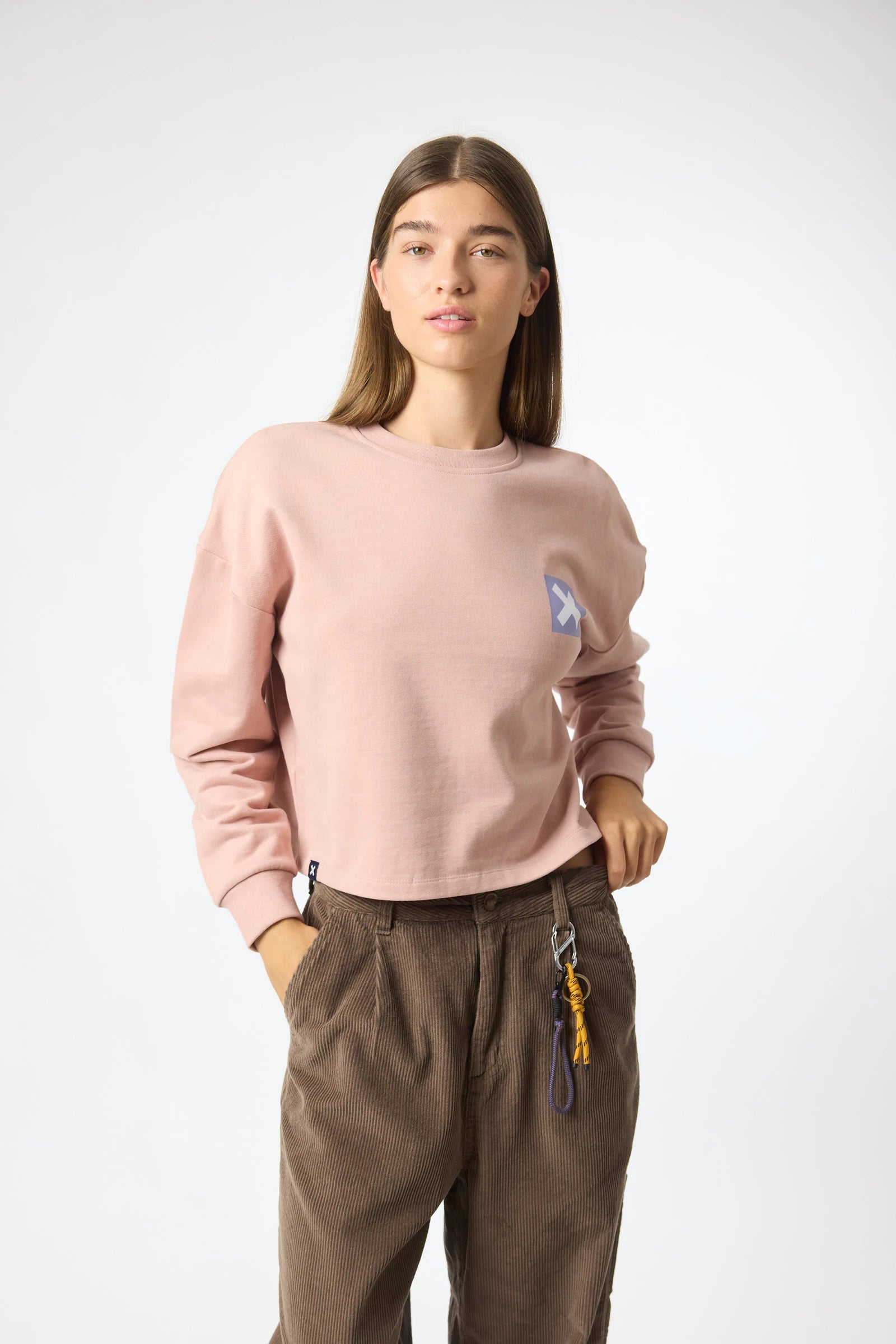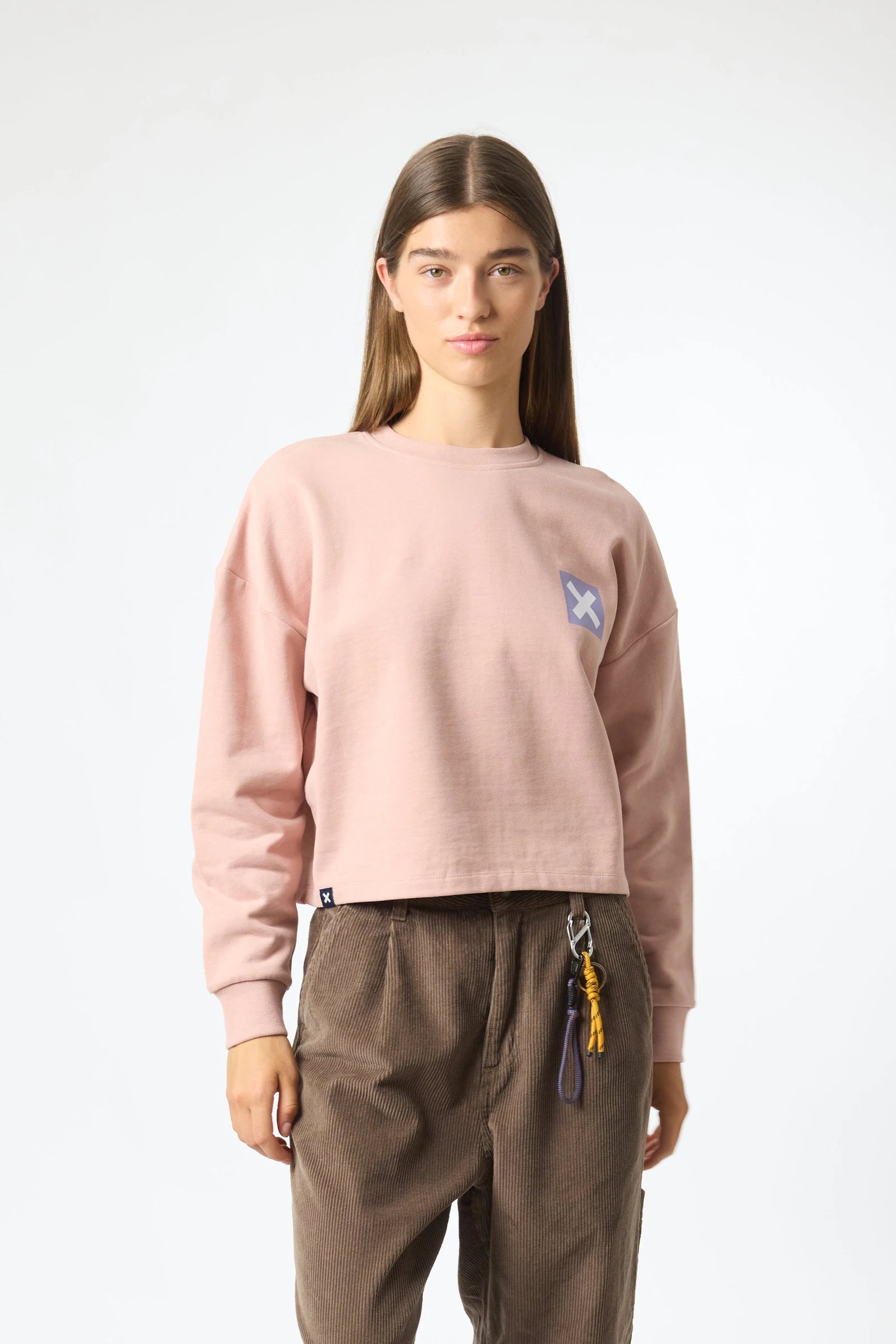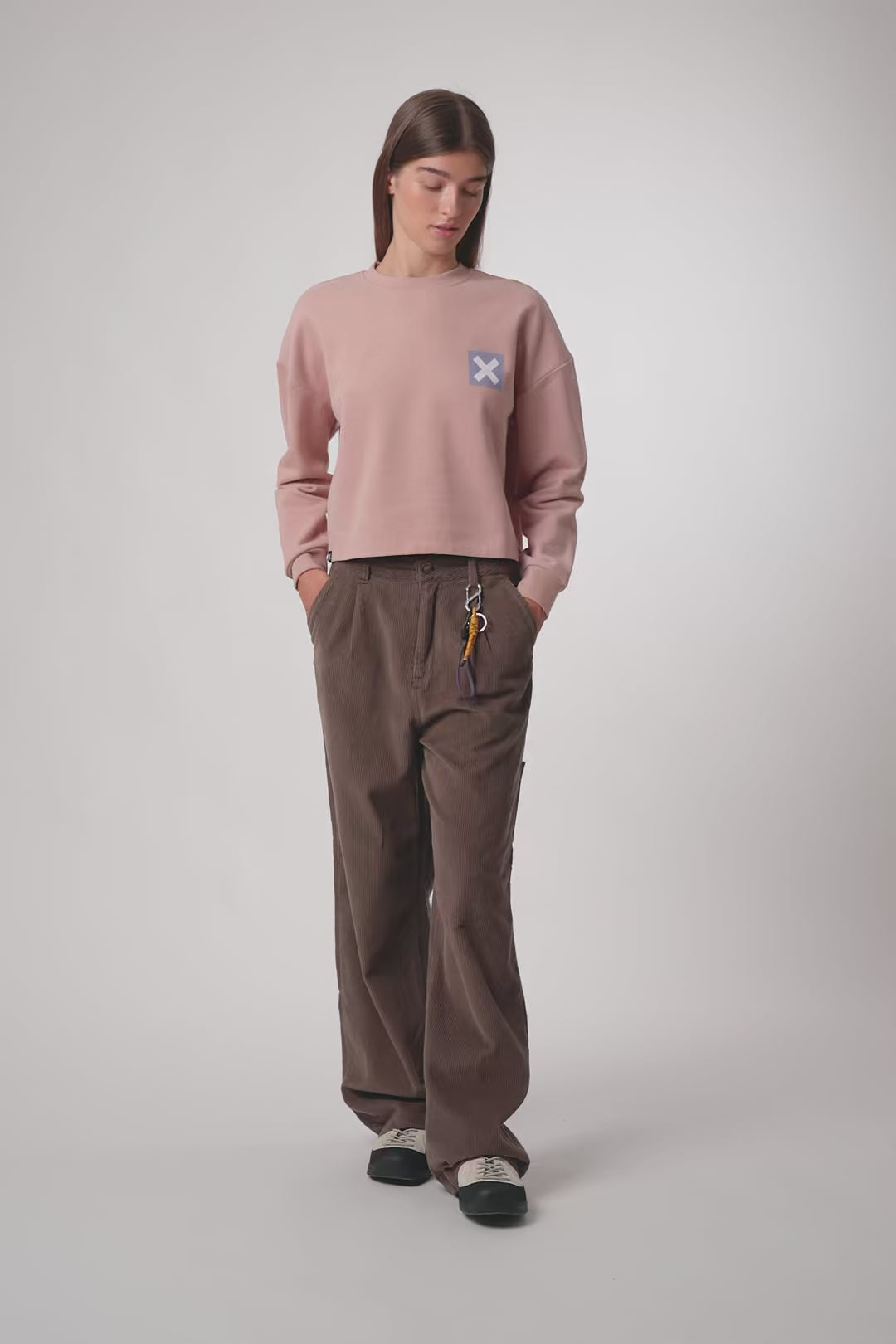 Sweat avec imprimé à l’avant et au dos. Confectionné en coton 100 % biologique et coupe crop.