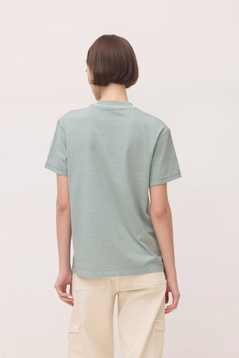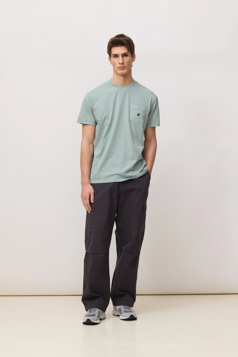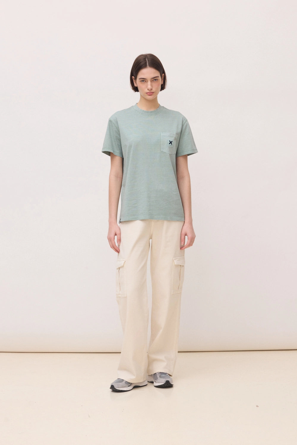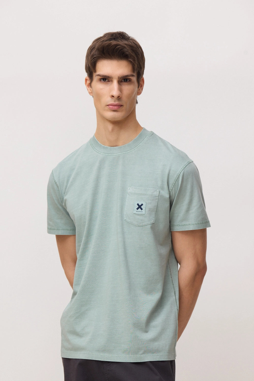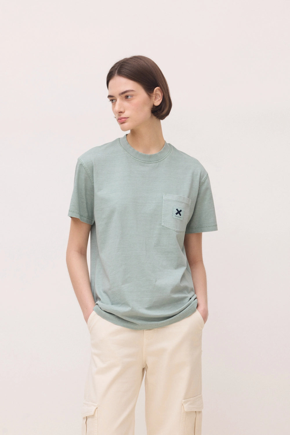 Camiseta efecto lavado con bolsillo delantero en la parte del pecho. Logo en etiqueta tejida. Confeccionada con 100% algodón orgánico. Corte regular fit y gramaje: 200 GSM.