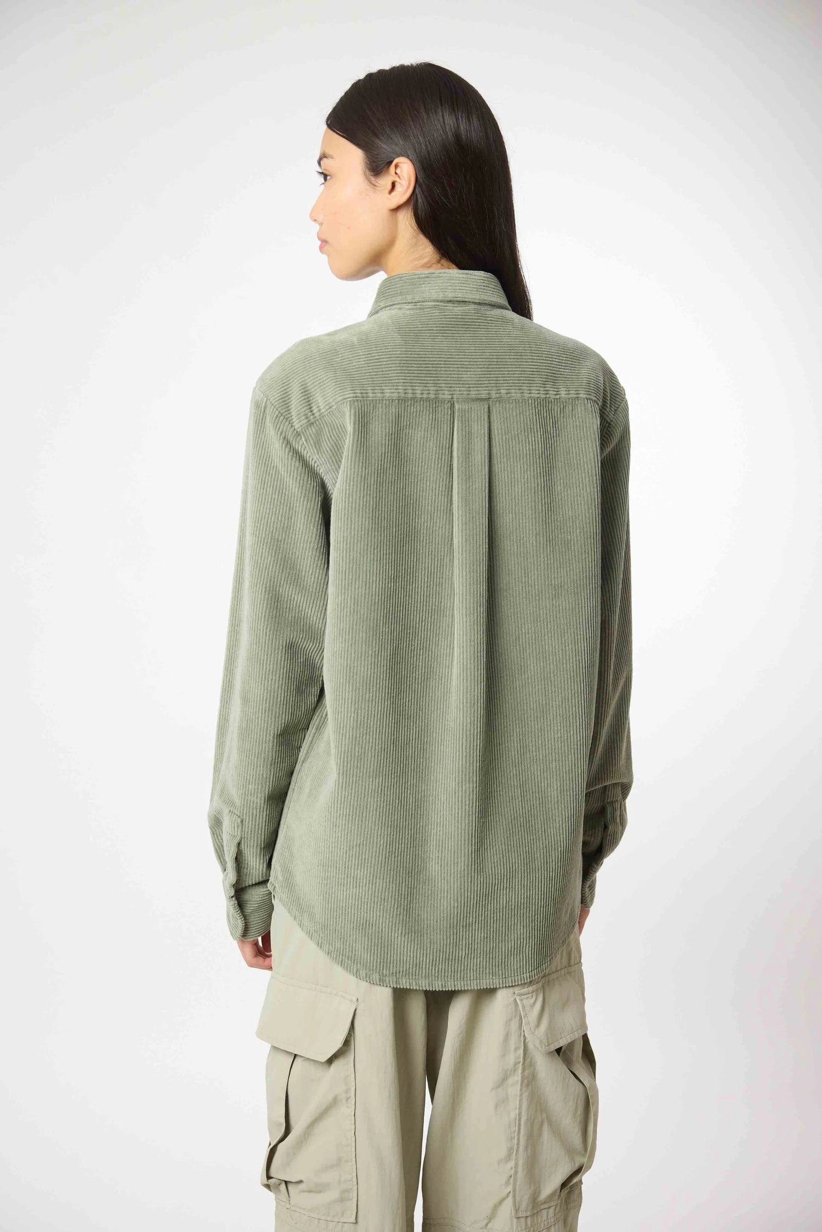 Surchemise à manches longues, en tissu velours côtelé de coton. Coupe décontractée.