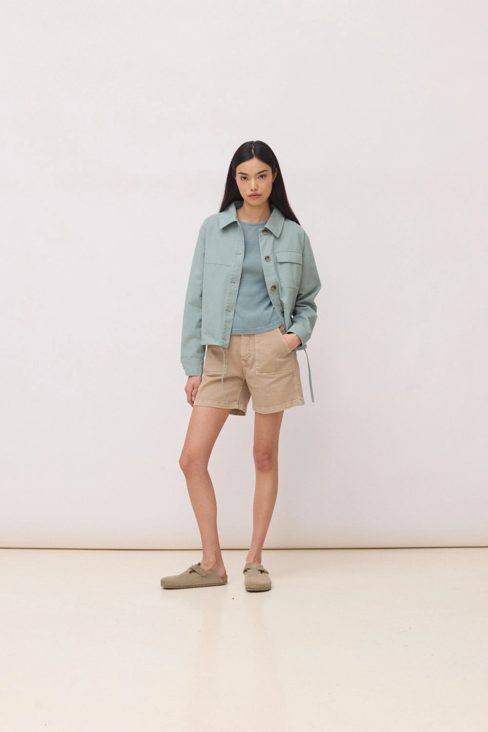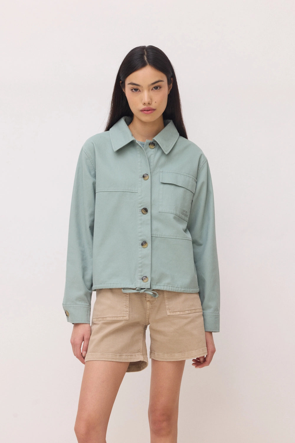 Chaqueta overshirt. Cordón ajustable en el bajo. Puños con botón. Confeccionada con 100% algodón.