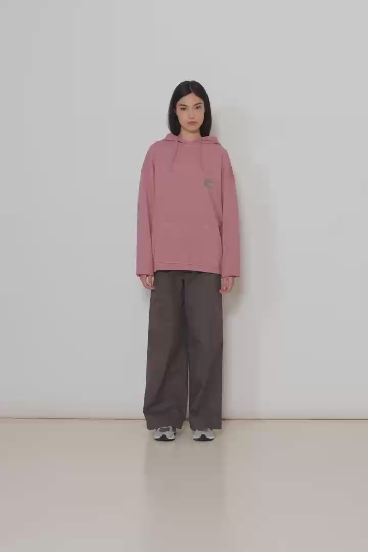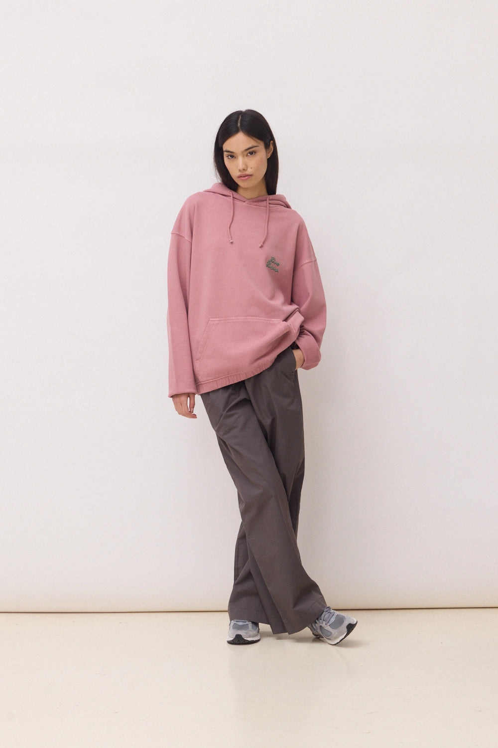 Sweat à capuche avec imprimé devant sur le côté supérieur gauche et imprimé central au dos et coupe oversize. Confectionné en 100% coton biologique.
