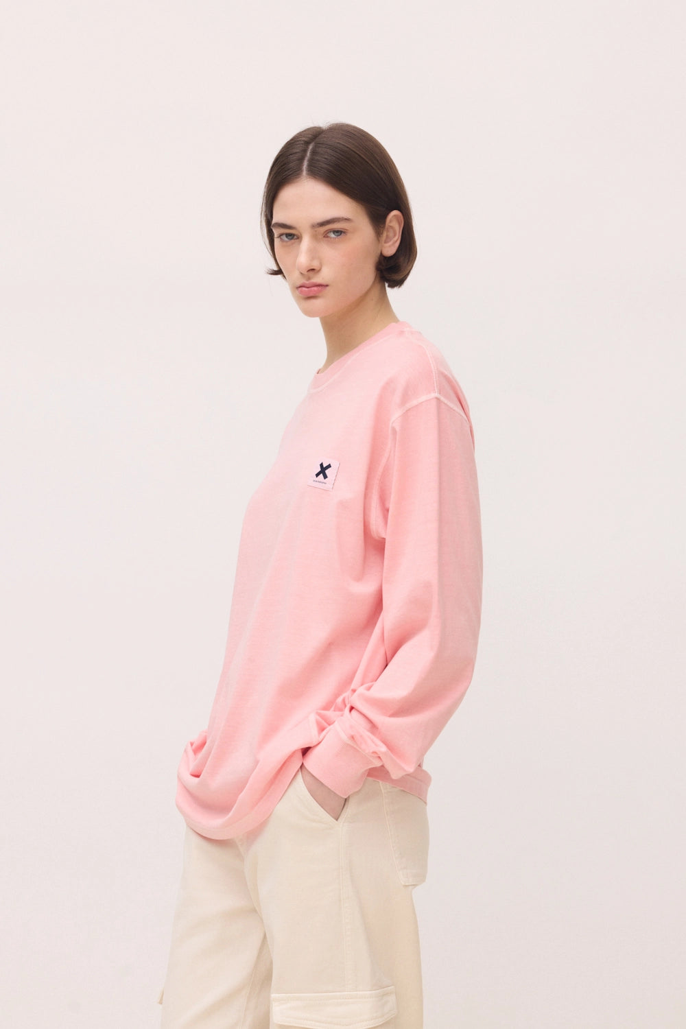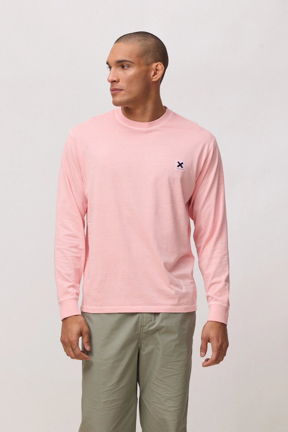 Camiseta manga larga efecto lavado con etiqueta tejida en el delantero. Logo en etiqueta tejida. Confeccionada con 100% algodón orgánico. Corte regular fit y gramaje: 240 GSM.