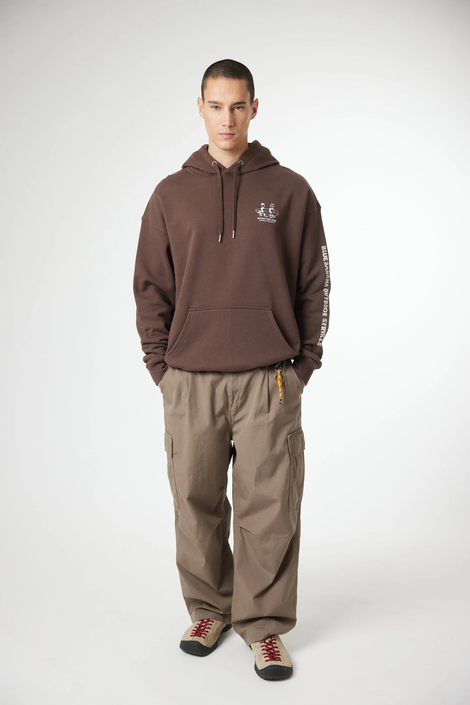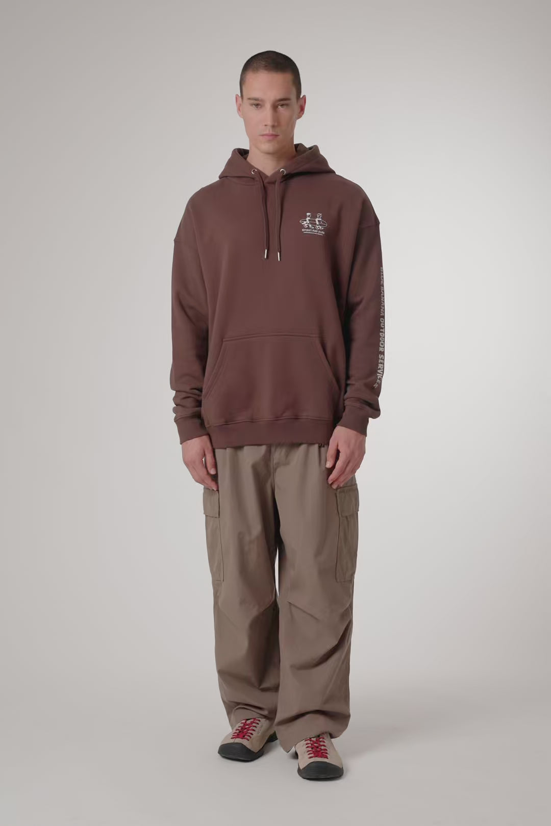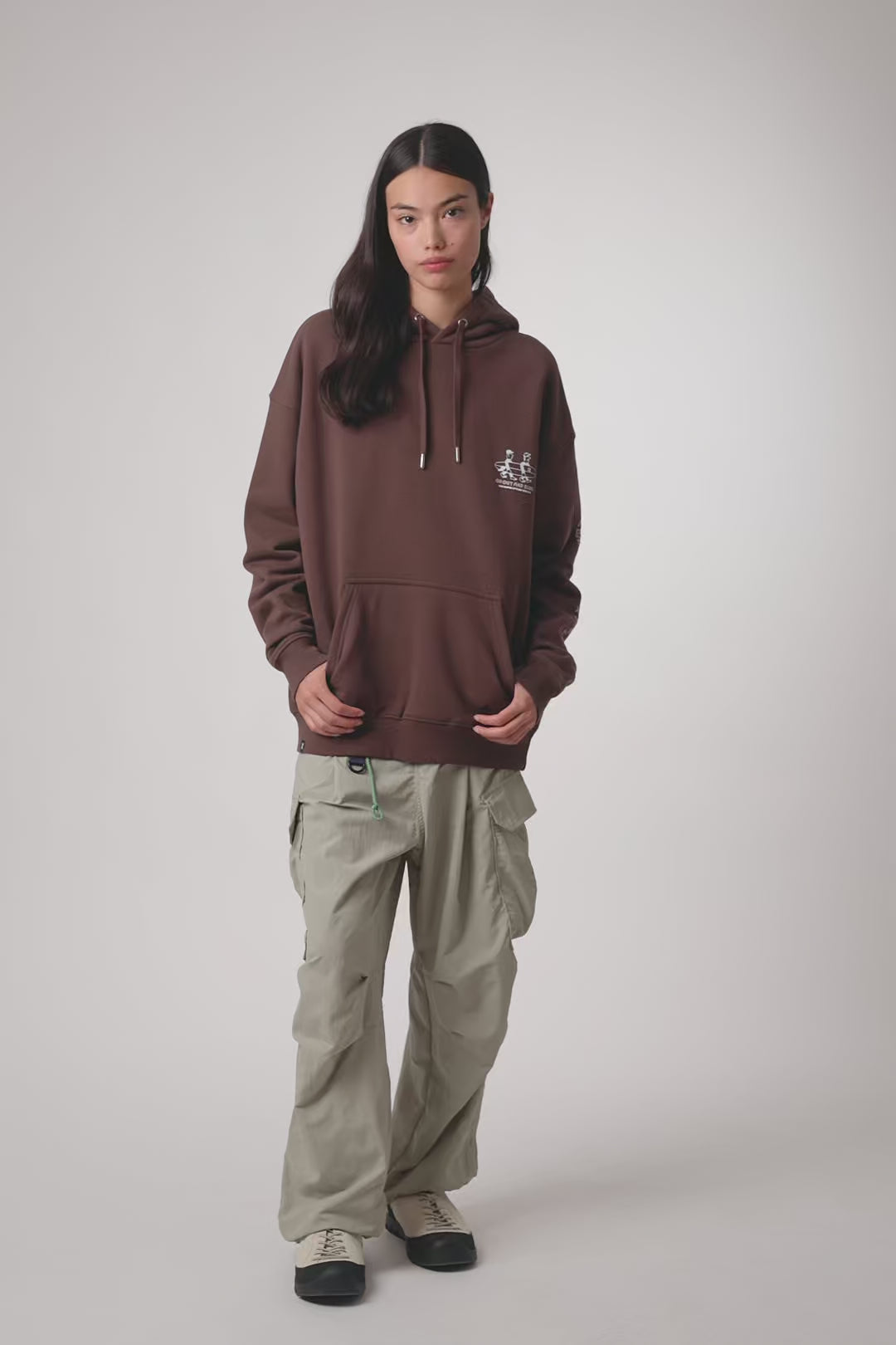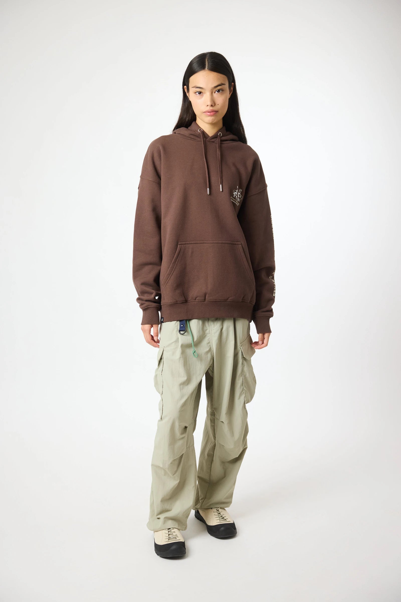 Sweat à capuche avec imprimé à l’avant supérieur gauche et imprimé central au dos. Poche frontale inférieure centrale avec ouverture des deux côtés. Confectionné en coton 100 % biologique et coupe oversize.