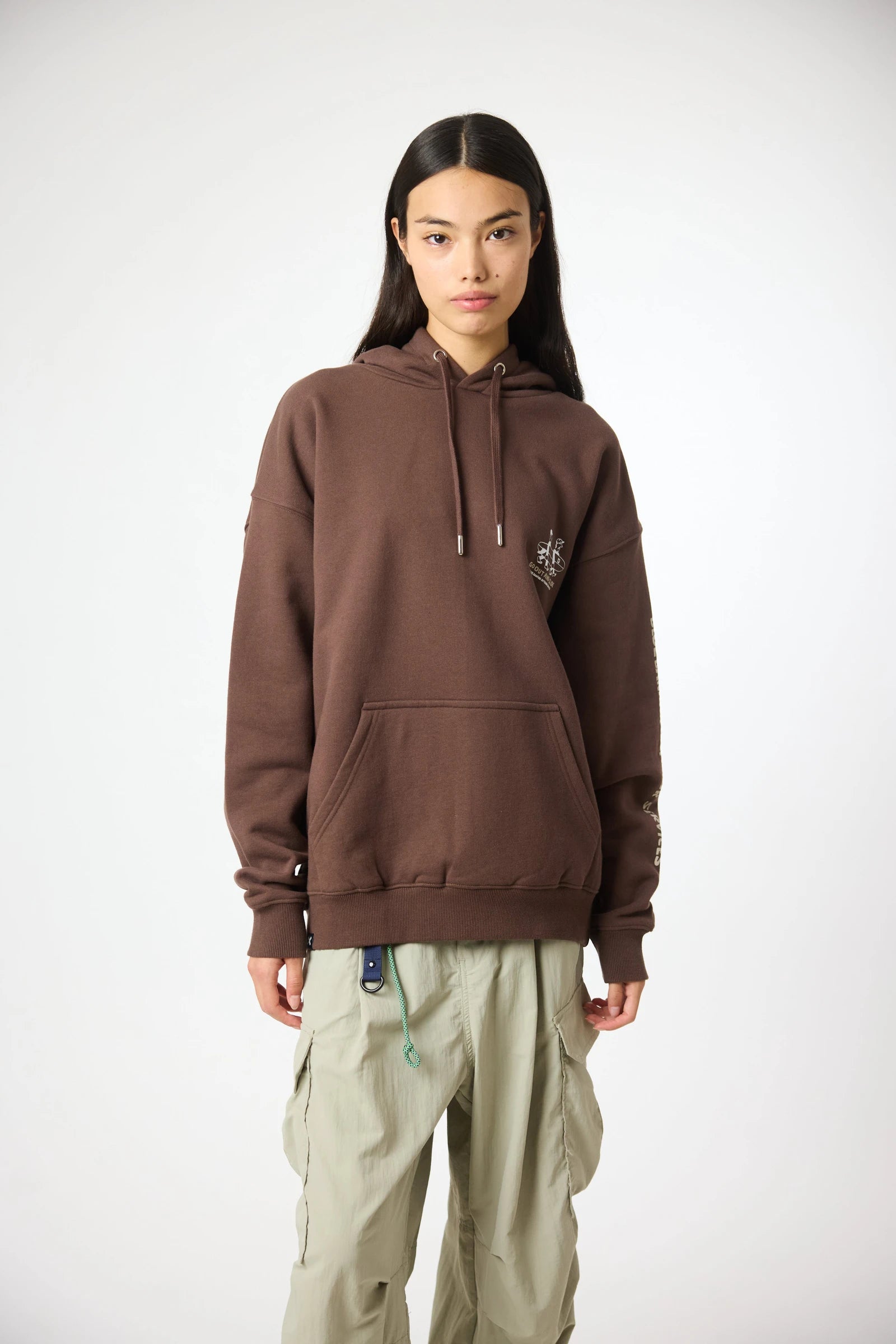 Sweat à capuche avec imprimé à l’avant supérieur gauche et imprimé central au dos. Confectionné en coton 100 % biologique et coupe oversize.