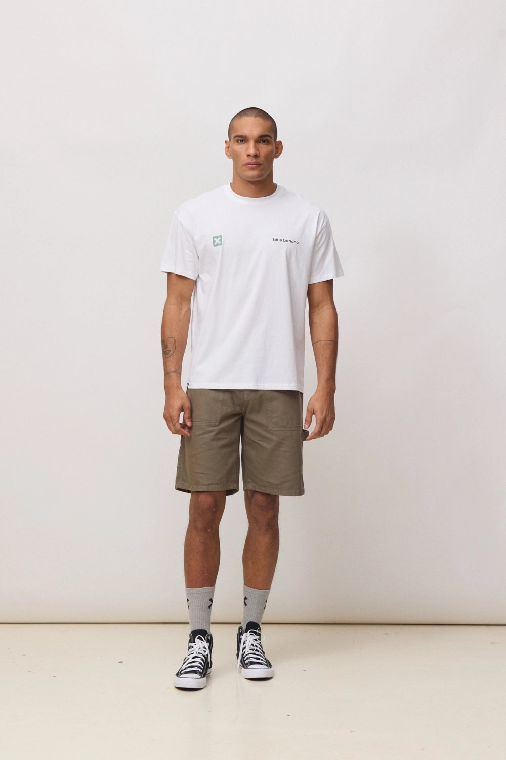 T-shirt avec imprimé à l'avant sur la poitrine et au dos confectionné en 100% coton biologique.