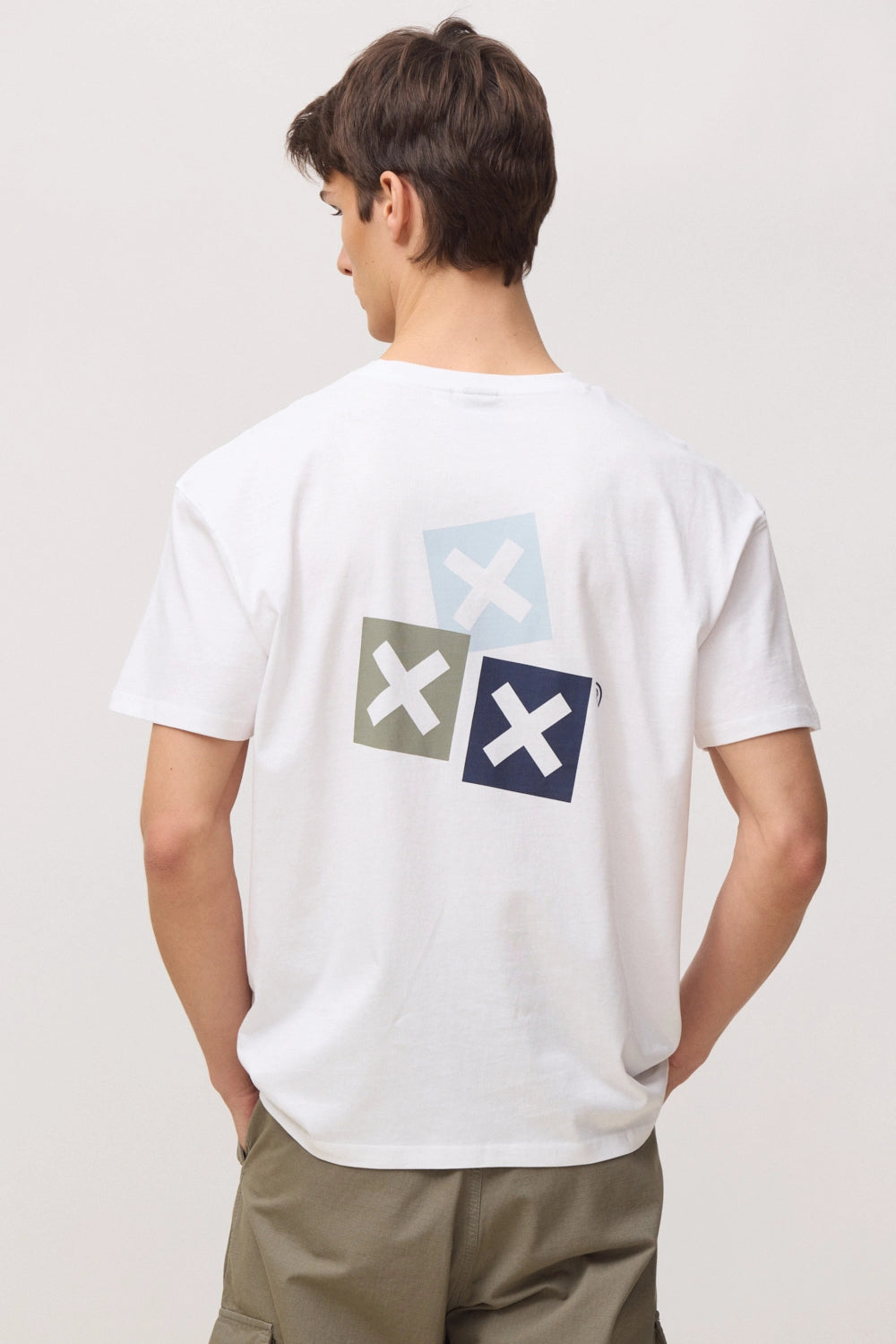 T-shirt avec imprimé au dos confectionné en 100% coton biologique.