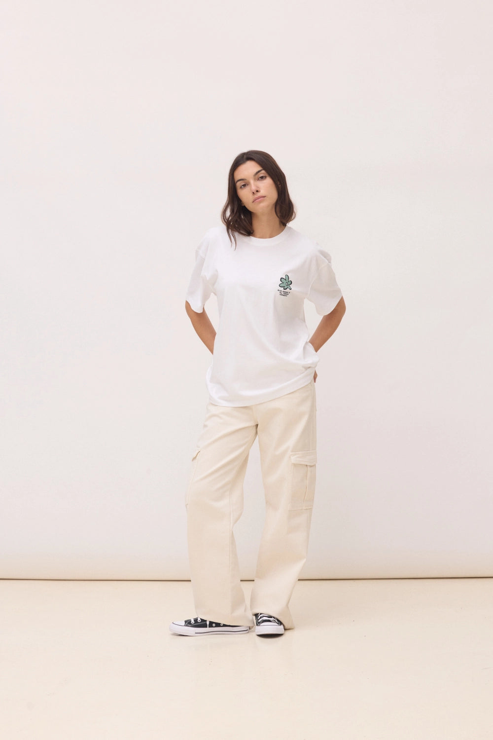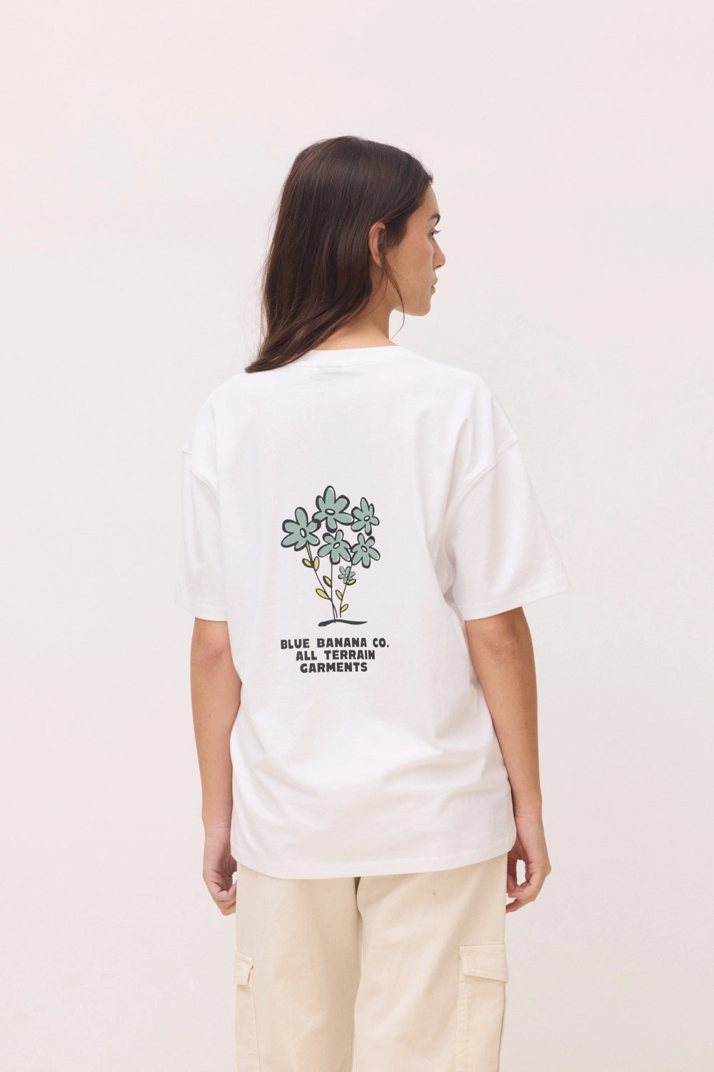 Camiseta con print delantero y trasero. Confeccionada con 100% algodón orgánico. Corte oversize y gramaje: 200 GSM.