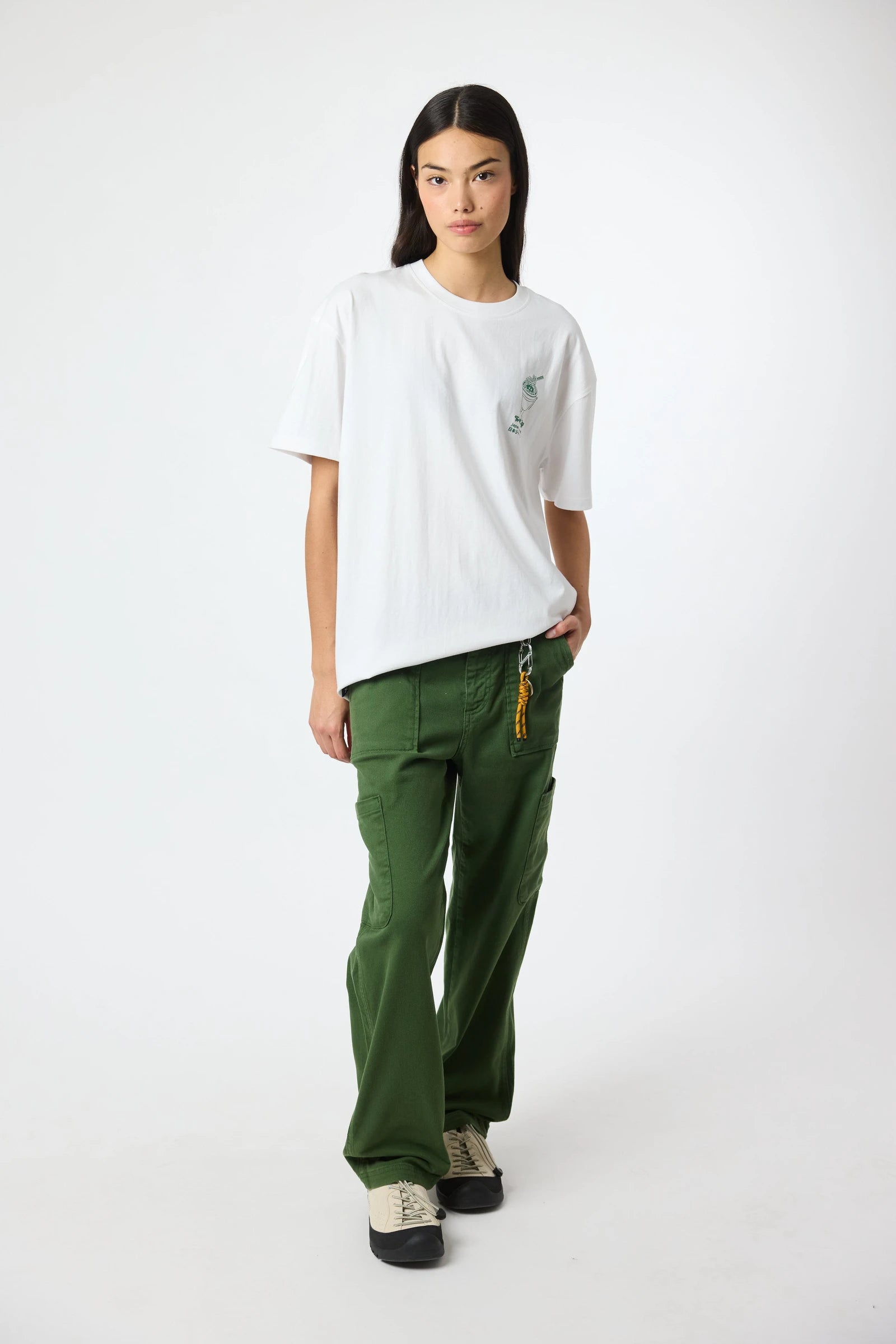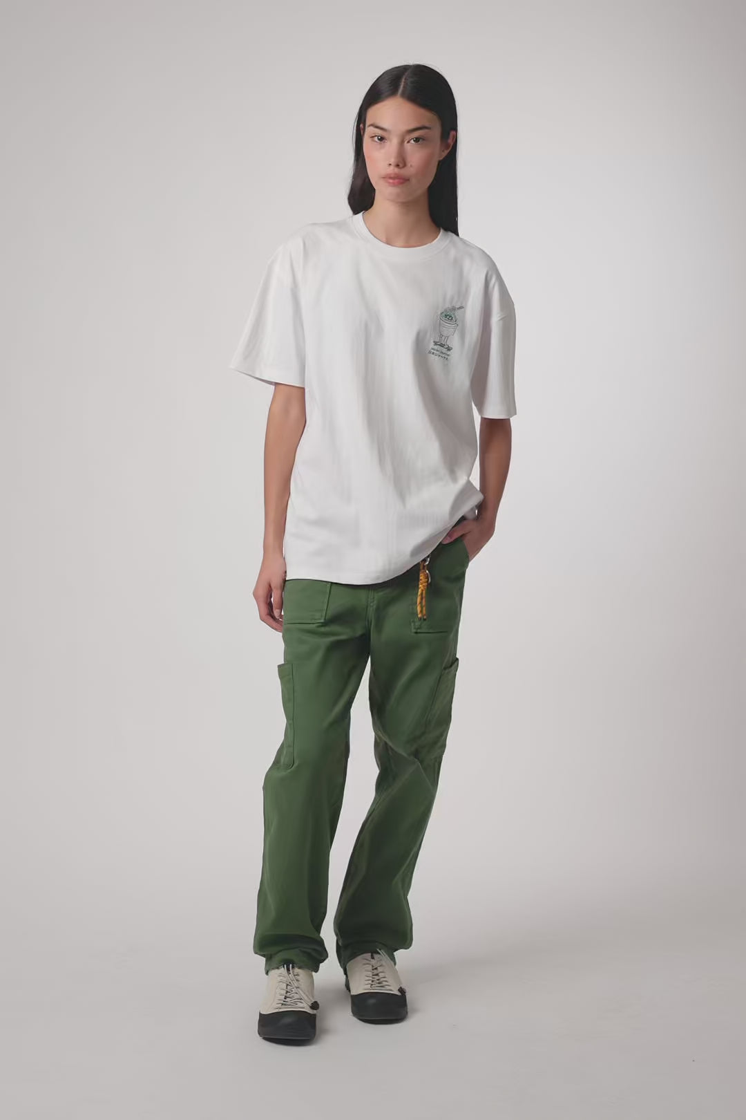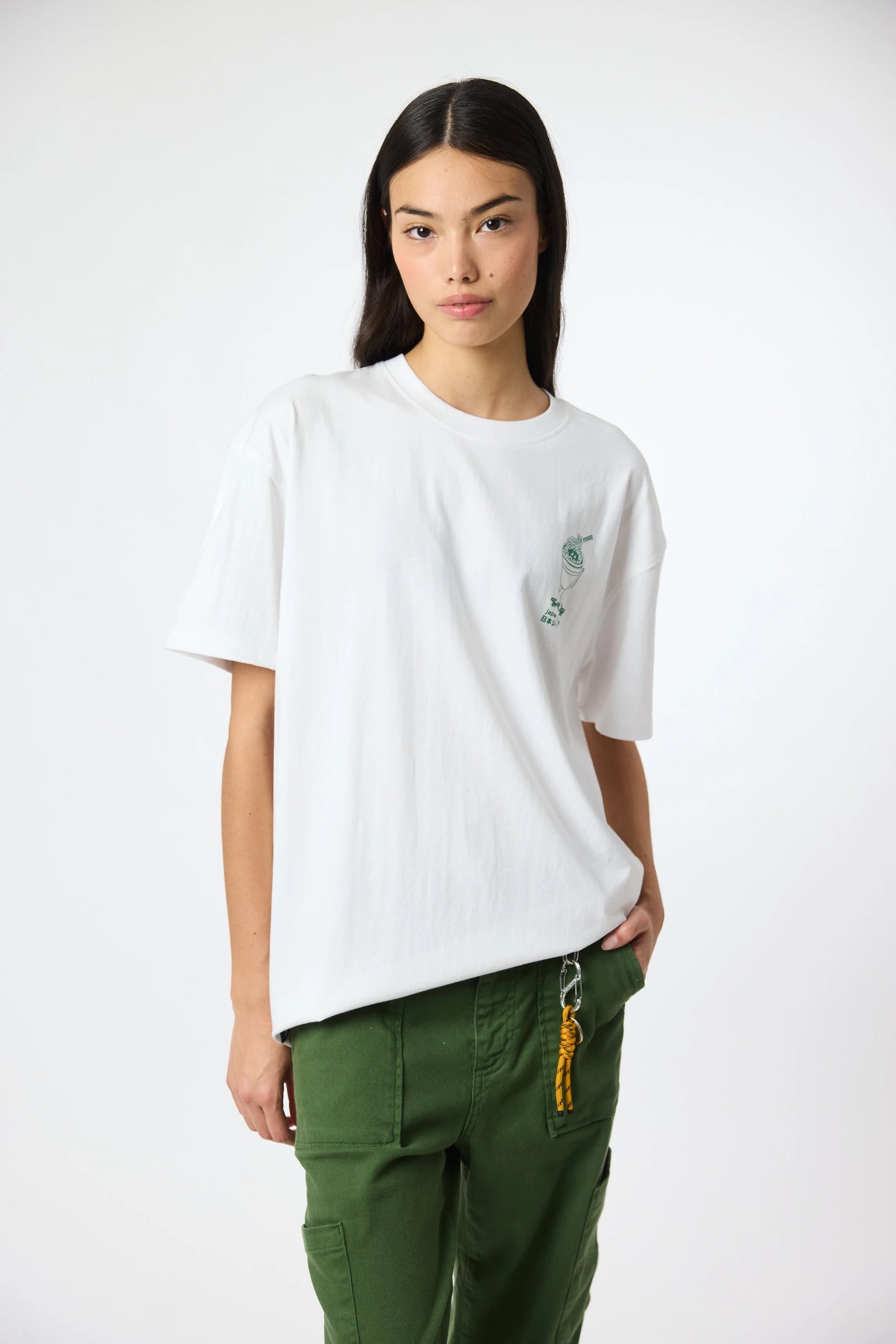T-shirt avec imprimé à l’avant en haut à gauche et imprimé central au dos. Confectionné en coton 100% biologique et coupe oversize.