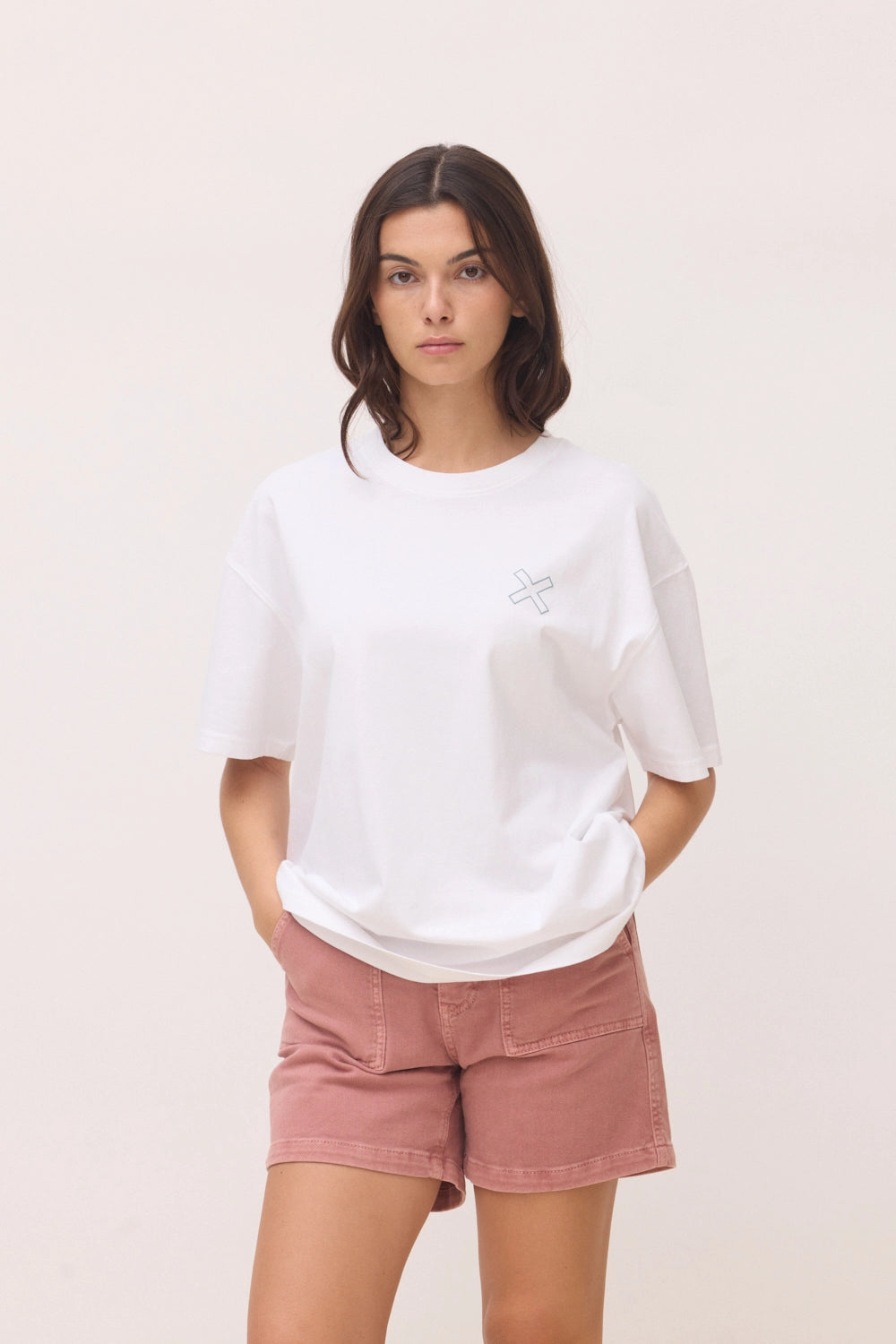 Camiseta con print delantero y trasero. Confeccionada con 100% algodón orgánico. Corte oversize y gramaje: 200 GSM.