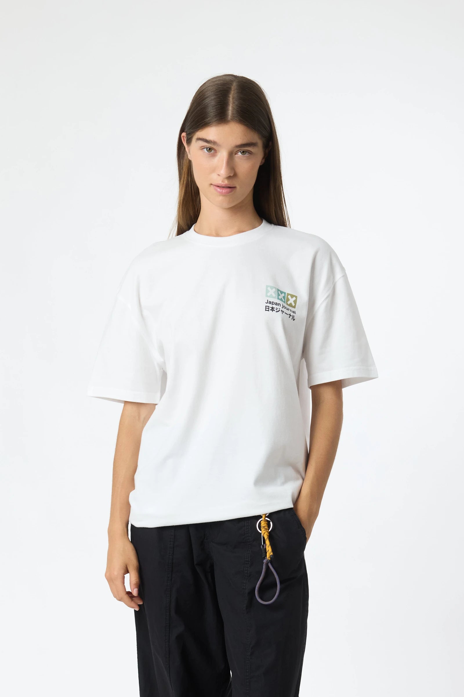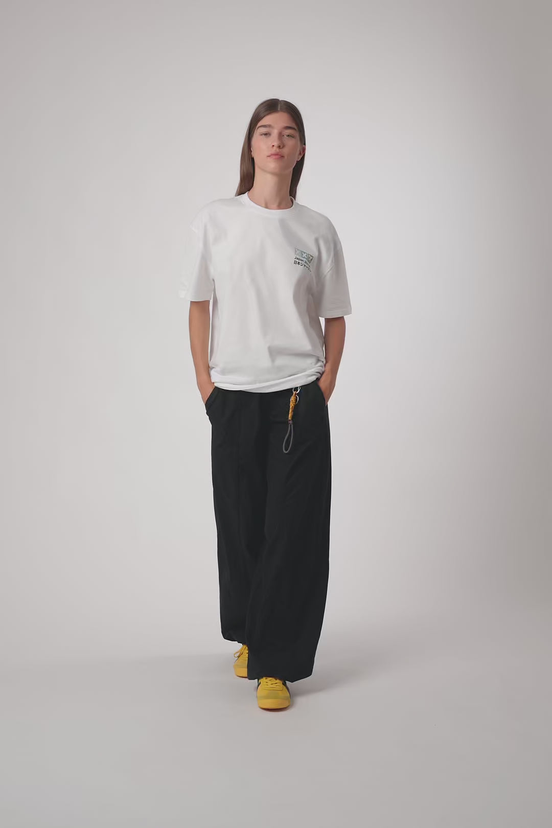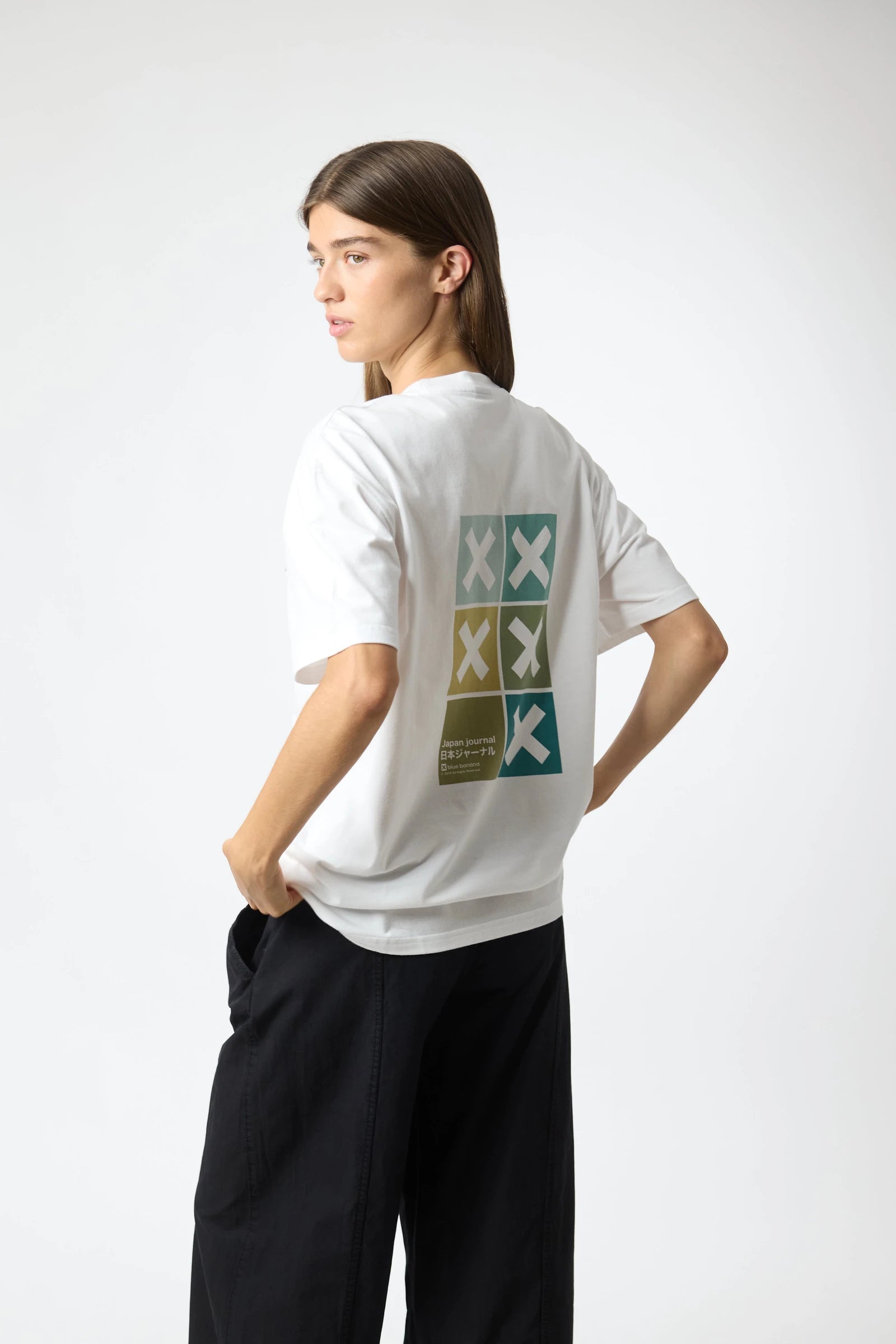 T-shirt avec imprimé à l’avant sur le côté supérieur gauche et imprimé centré au dos. Confectionnée en 100% coton biologique et coupe oversize.
