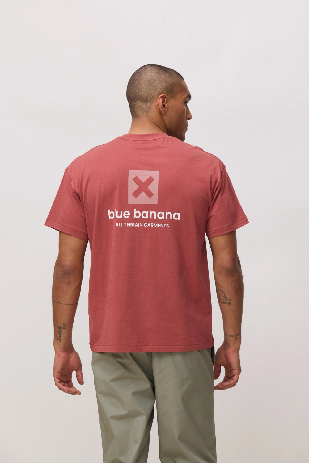 T-shirt avec imprimé à l'avant sur la poitrine et au dos confectionné en 100% coton biologique.