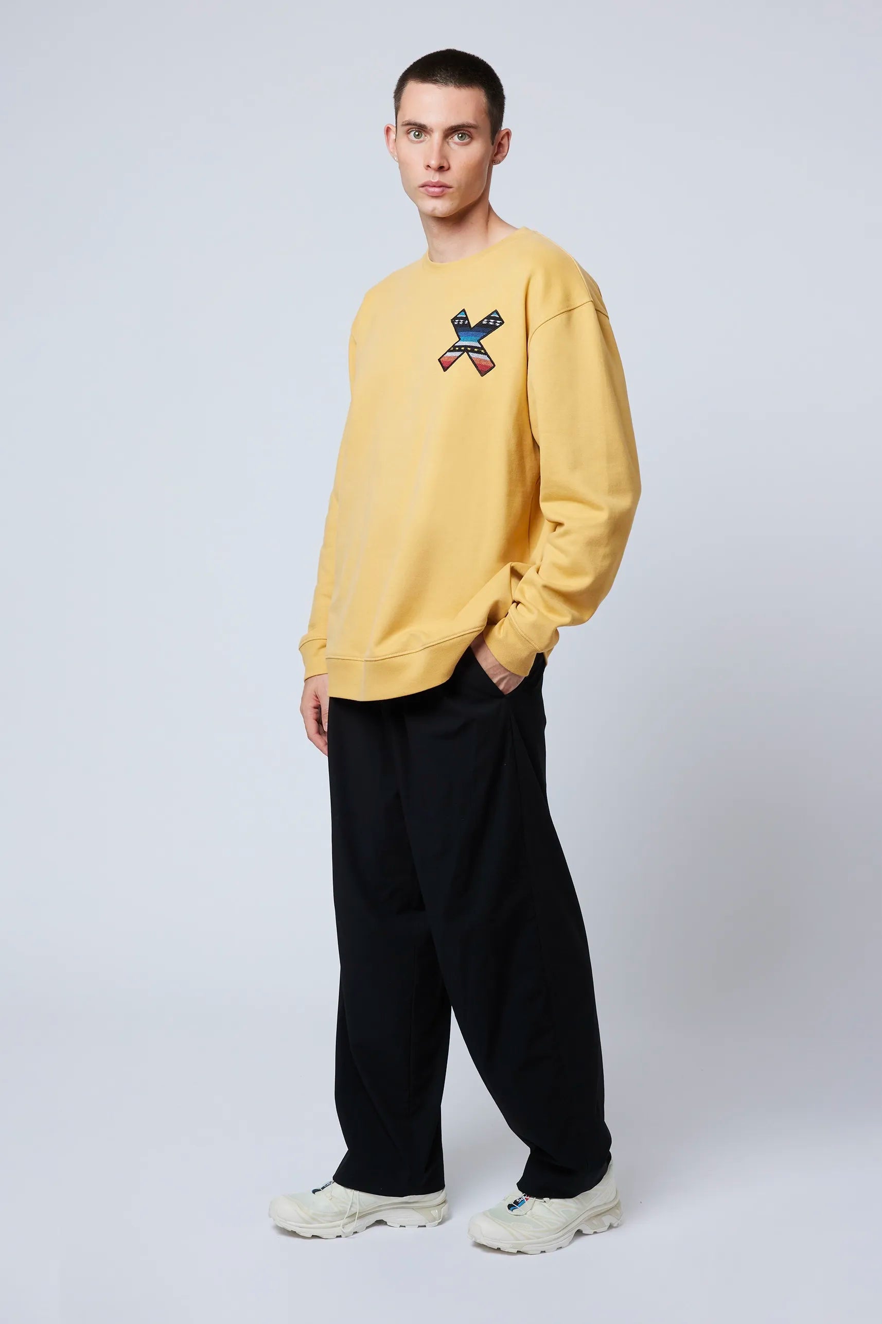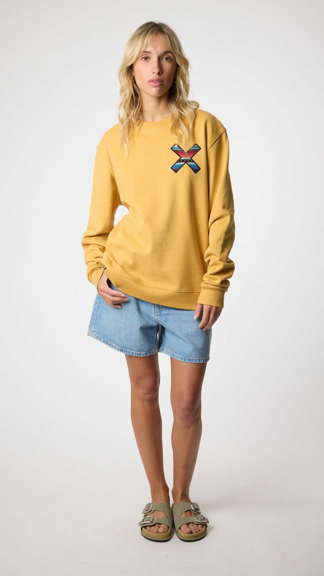 Sweat-shirt avec notre classique X brodée : à l'avant sur la poitrine et à l'arrière sur le dos. Fabriqué avec 100% de coton biologique et une coupe régulière.